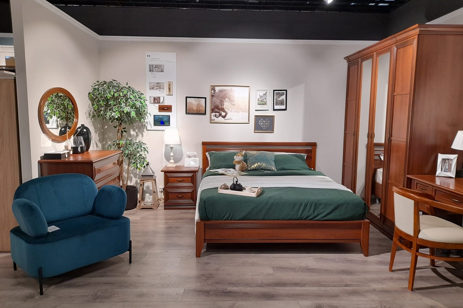 - Адажио — это традиционное прочтение итальянской классики. Мебель из коллекции подойдет не только к классическим интерьерам, но и к спальням в стилях фьюжн, контемпорари и эклектика;