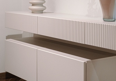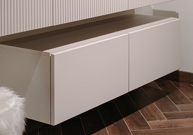 - В выдвижных ящиках используются направляющие скрытого монтажа со встроенным доводчиком;